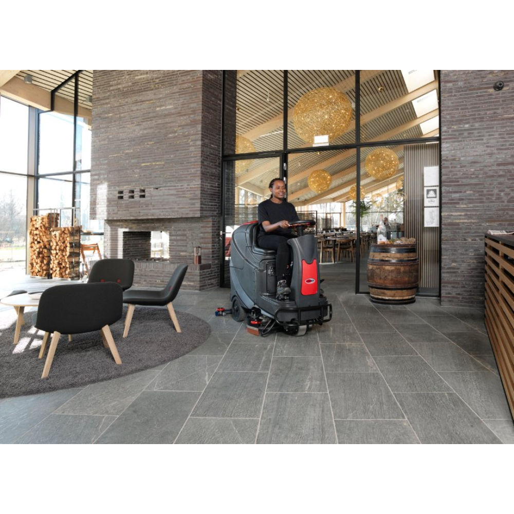 De VIPER AS710R is een compacte ride-on schrobzuigmachine en ideaal voor het reinigen in krappe en drukke ruimten.